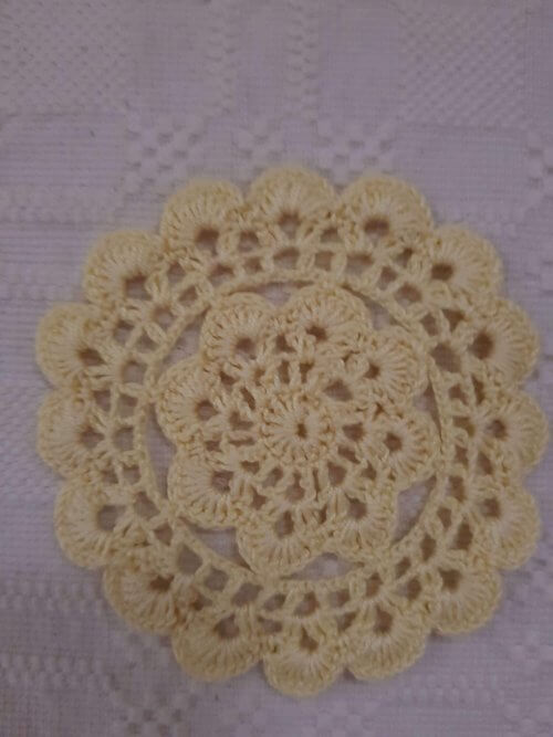 Saját készítésű virág alakú horgolt poháralátét, mely nem csak az ünnepi asztalon, vagy egy hangulatos délutáni kávézásnál szép és hasznos, hanem sokféle képen használható: lakás vagy esküvői dekorációként ( pl. virágfüzérként ), adható ajándékként is ( pl. nász vagy köszönő ajándék ). Darabonként is meglehet vásárolni, de egyszerre több darabot rendelve, szettet is összeállíthatunk, akár a jelenleg elérhető egymással harmonizáló 3 ( fehér, világos sárga, ekrü ), színből is.